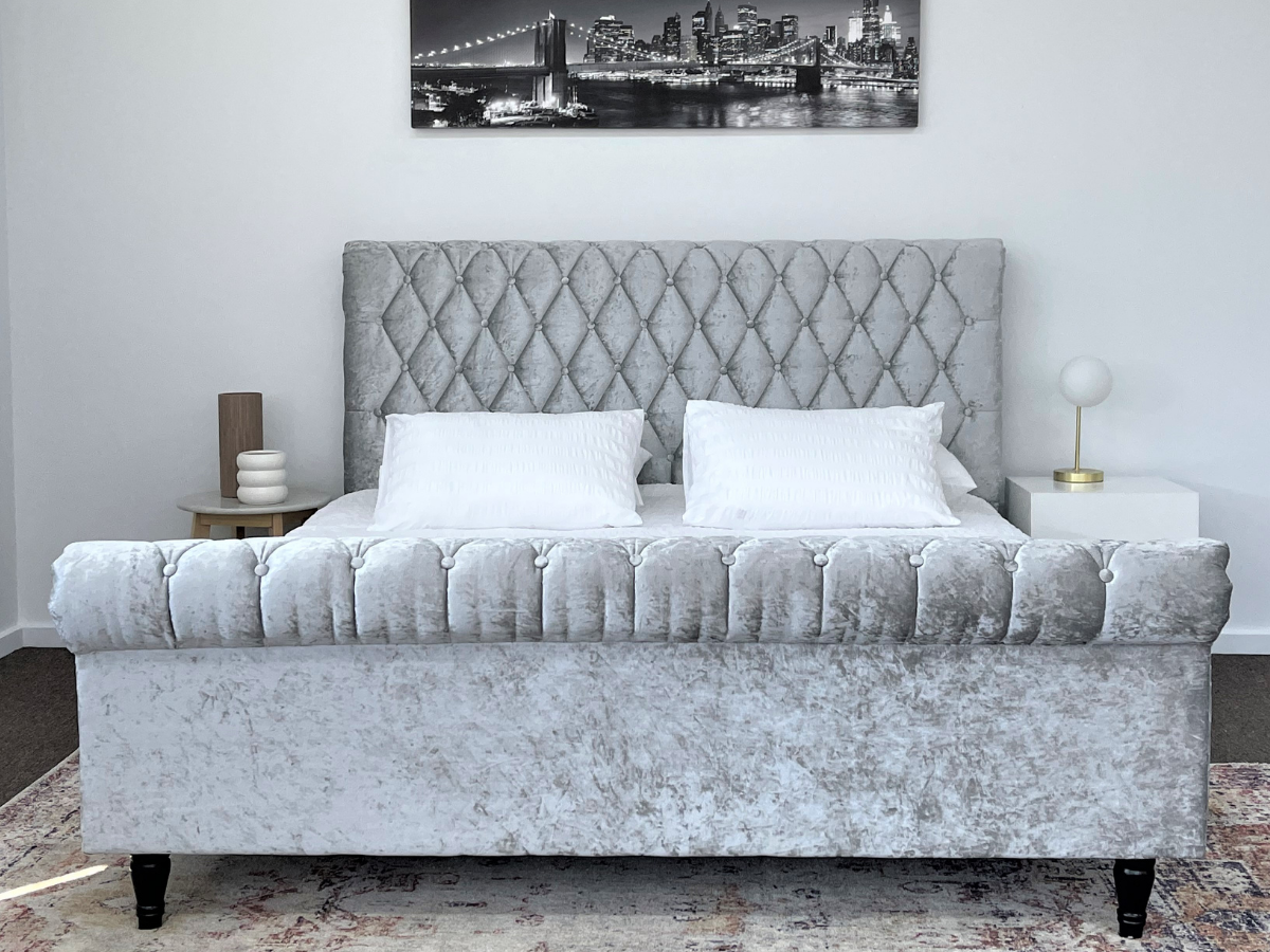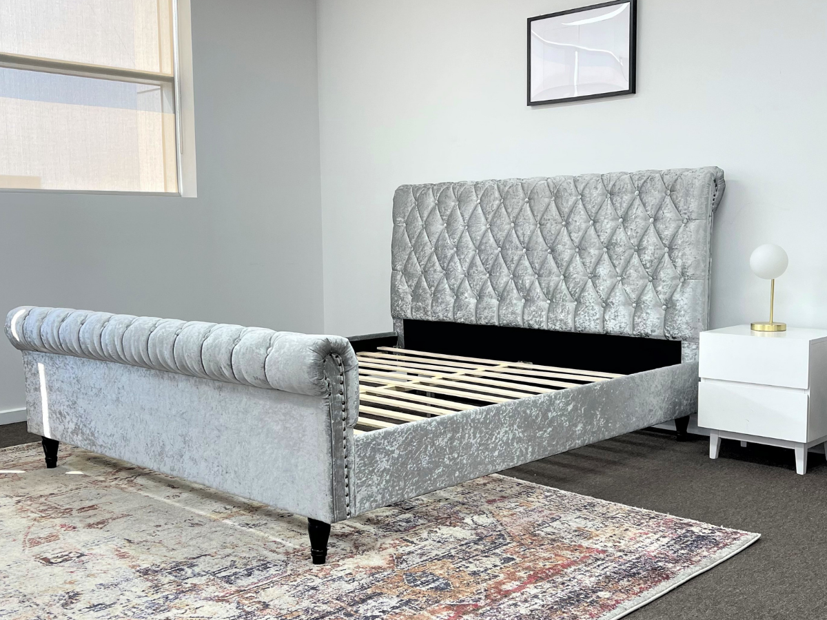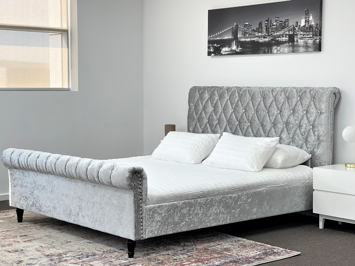Venice Silver Grey Luxury Velvet Fabric Bed King or Queen