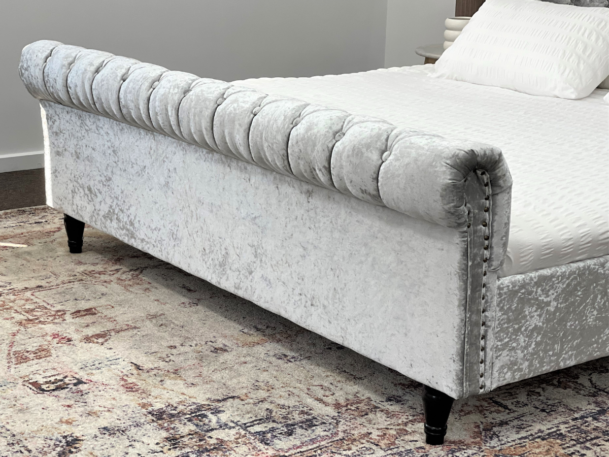 • Silver Bed: Fabric Tuft