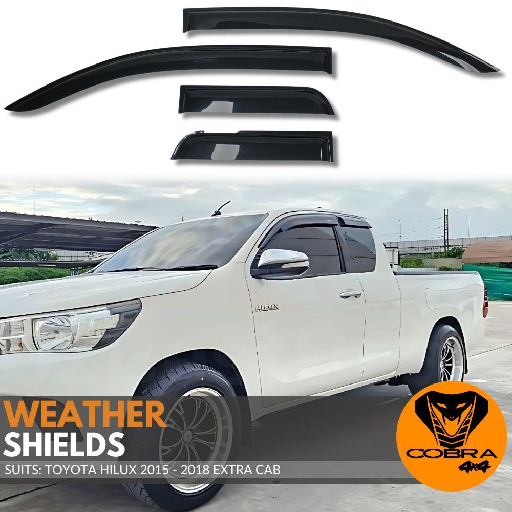 The Cobra 4x4 Weather shields to suit the Toyota Hilux 2015 - 2018 Extra Cab are made from impact-modified acrylic. They are made for: