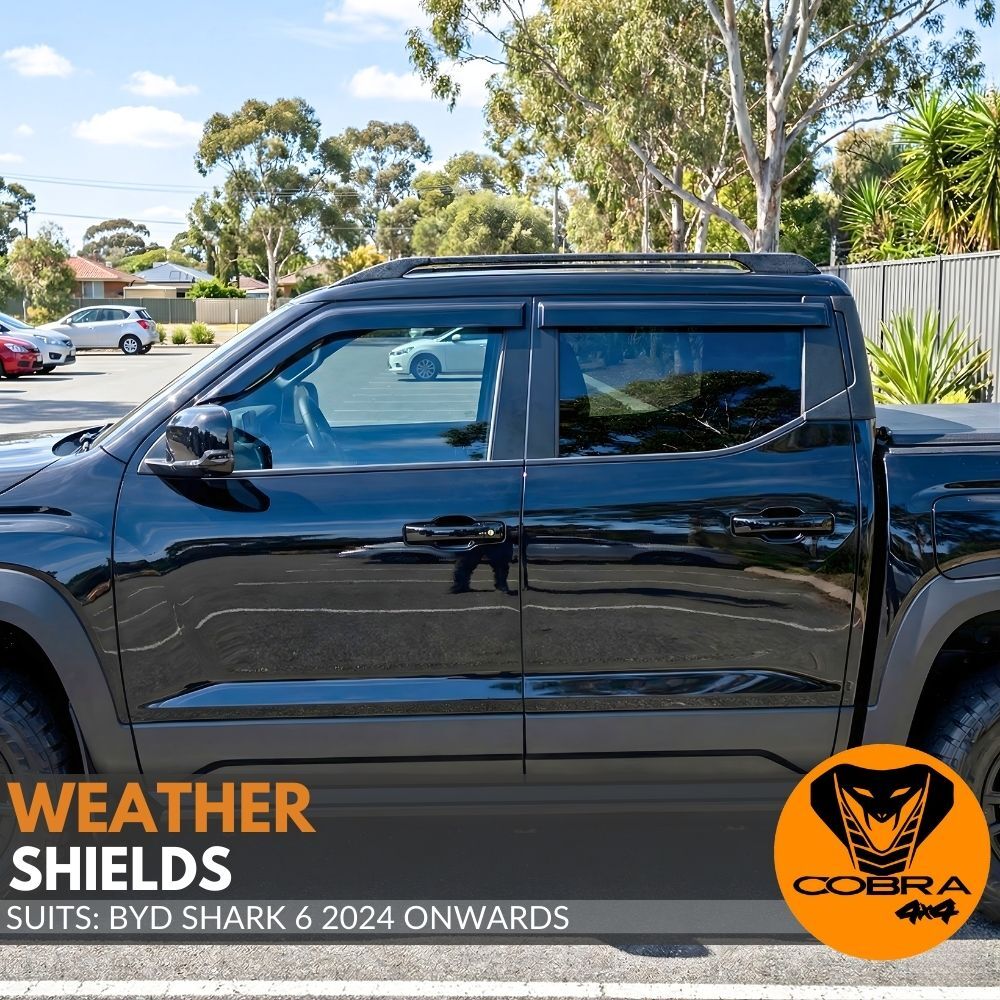 The Cobra 4x4 Weather shields to suit the BYD Shark 6 2024 Onwards dual-cab models are made from impact-modified acrylic for