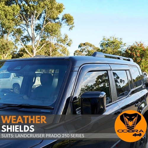 The Cobra 4x4 Weather shields to suit the Landcruiser Prado 250 Series models are made from impact-modified acrylic for