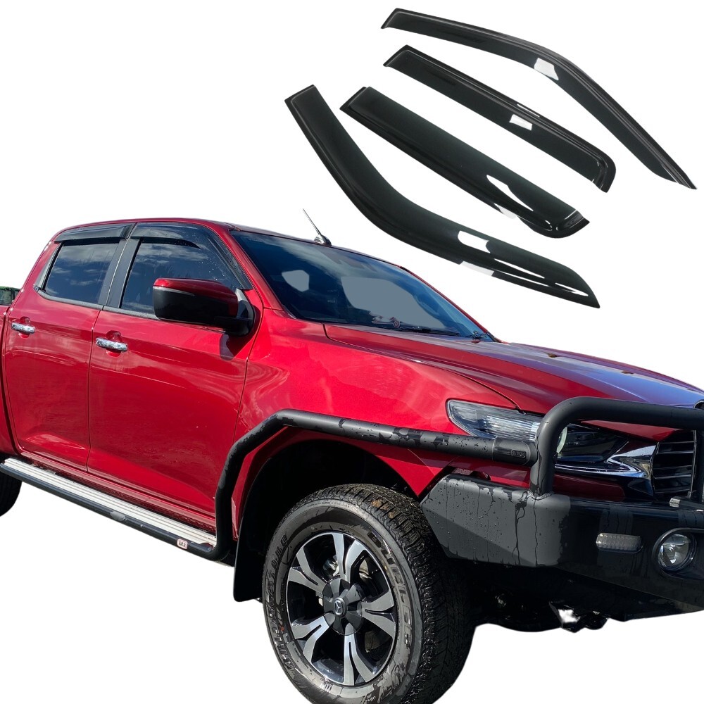 The Cobra 4x4 Weather shields to suit the Mazda BT50 2021+ dual cab are made from impact-modified acrylic for